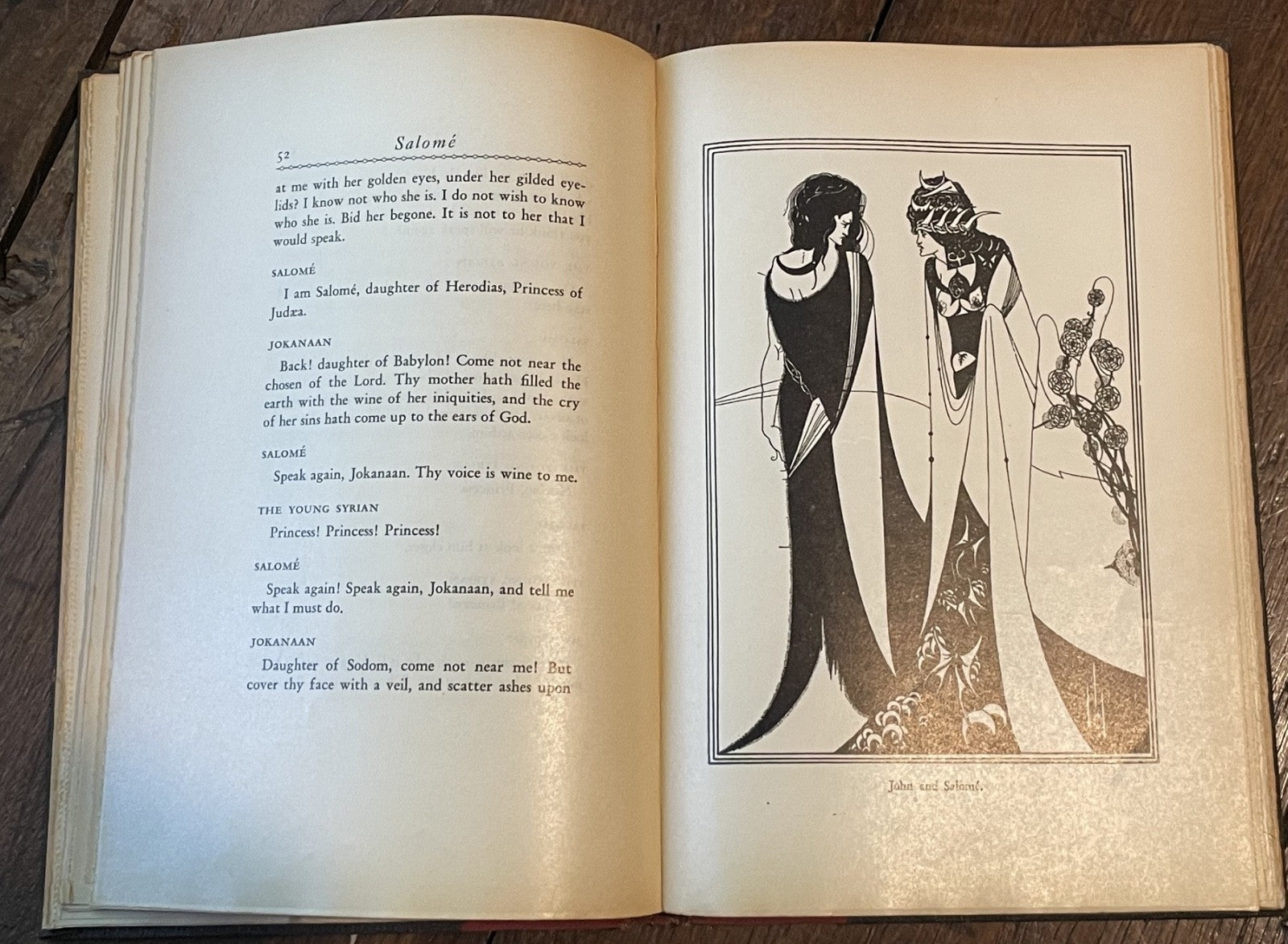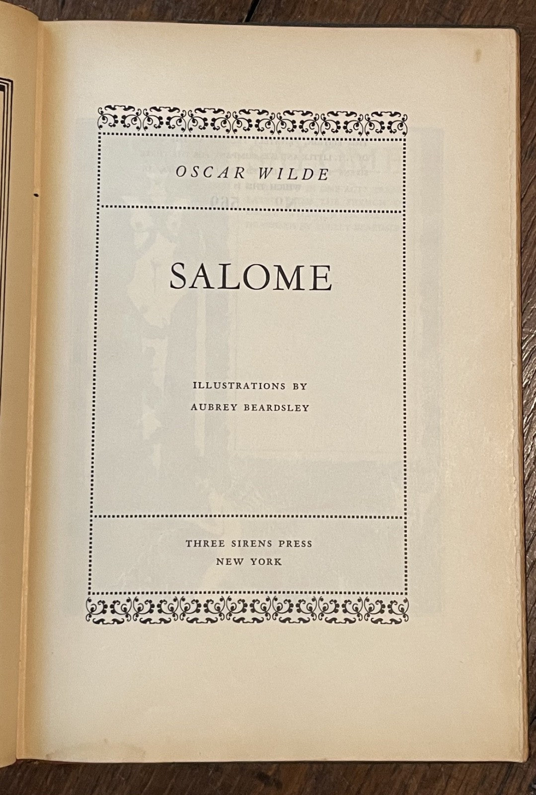 Book Details + Condition: Three Sirens Press (New York). First and Limited Edition by this publisher, 1920 (nd). Hardcover. 120 pages. This is copy #569 of 1500 of Oscar Wilde's celebrated one-act tragedy, originally written in French in 1891, and based on the biblical story of Salome and her mother Herodias. Includes the 16 beautiful and famous Art Deco drawings by Aubrey Beardsley. Wilde's play was prohibited from public performance in England due to its depiction of biblical characters, but was published in both French and English. It tells the story of Princess Salome's obsessive desire for the imprisoned prophet Jokanaan (John the Baptist), her seductive "Dance of the Seven Veils" for her stepfather King Herod, and her ultimate, horrifying demand for Jokanaan's head, which leads to her own death.