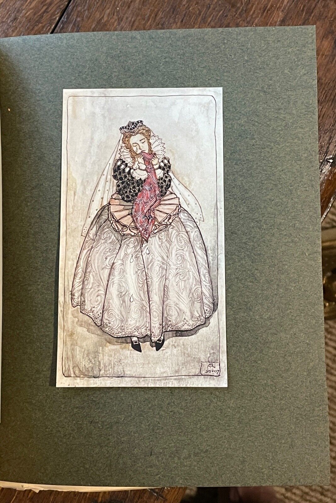 Book Details + Condition: J.M. Dent and Co. and E.P. Dutton (London and New York). First American Trade Edition, 1907. Hardcover with gilt-decorated sage green boards and spine (measuring approximately 10.25" x 8"). 549 pages. Beautifully illustrated by Arthur Rackham. Complete with 24 tipped-in color plates, which retain their descriptive guards - save for one missing guard to frontispiece. The celebrated book is a collection of myths, legends, ghost stories and poems written by Thomas Ingoldsby of Tappington Manor, which is the pen-name of English clergyman Richard Harris Barham. Ingoldsby’s collection of sagas and legends drew inspiration from folklore and legal jargon, chronicles of monks, local superstitions and myths, with brief snatches of words from other languages including German and Welsh. Some stories include: