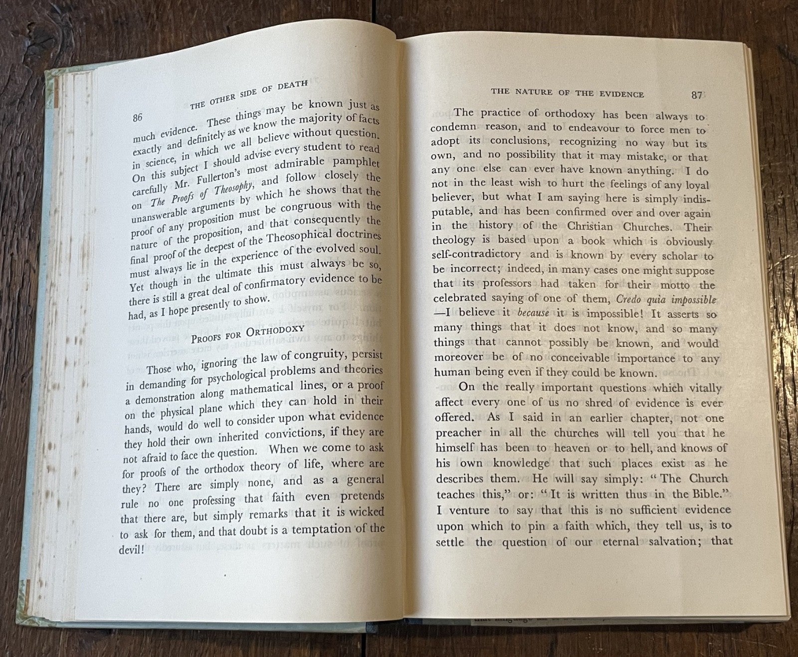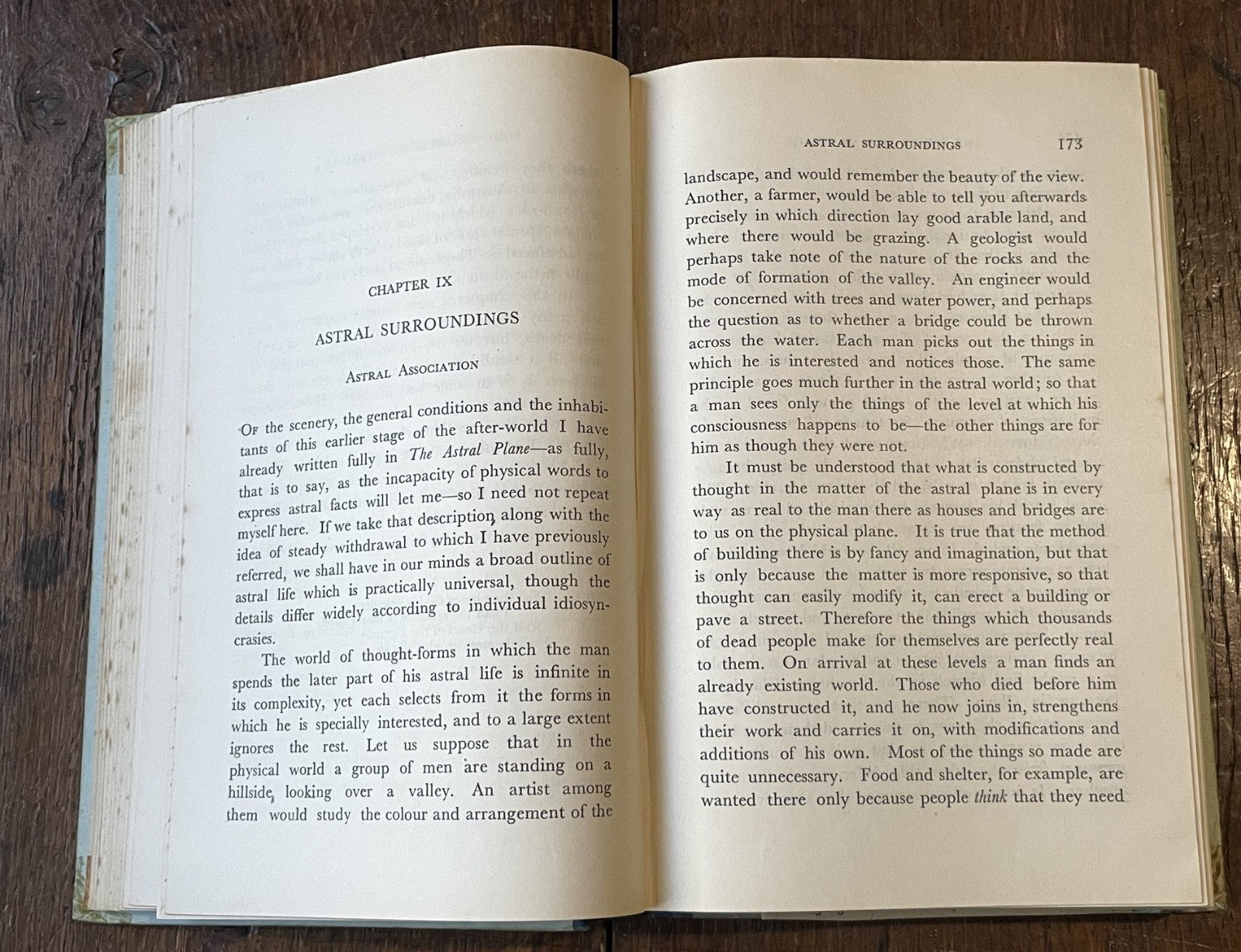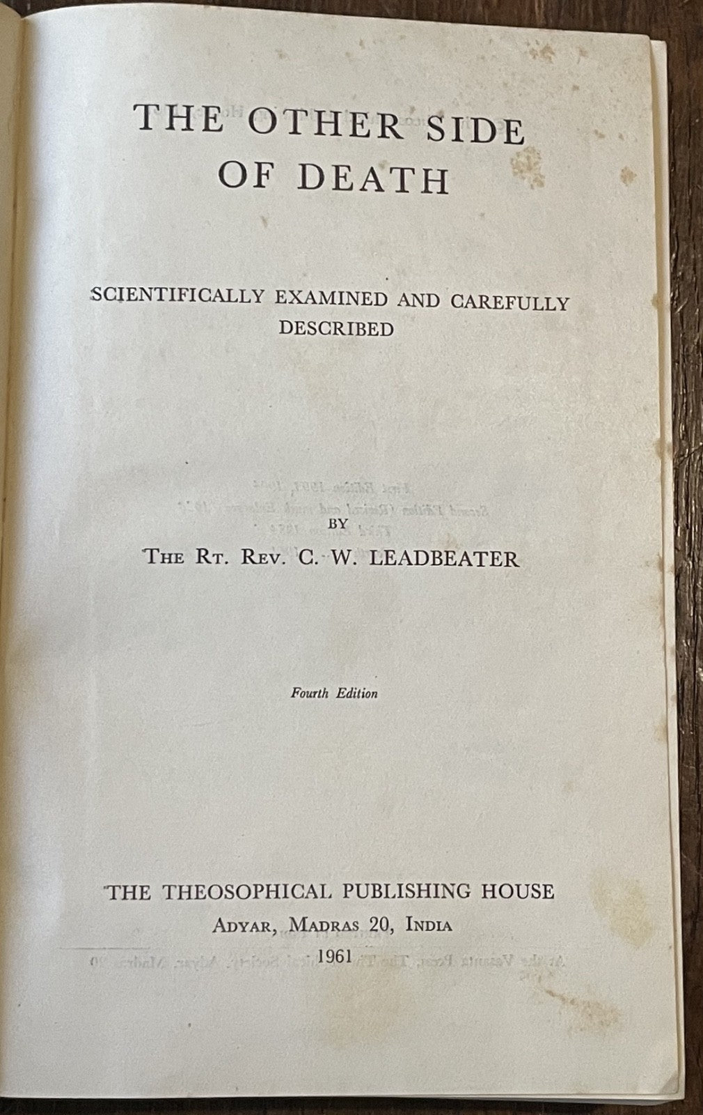 Book Details + Condition: The Theosophical Publishing House (Madras, India). 1961. Hardcover. 731 pages with Index. C.W. Leadbeater's classic Theosophical text presents a spiritual, clairvoyant-based view of life after death, explaining the astral plane as a continuation of existence where the soul sheds the physical body, detailing astral surroundings, the role of "helpers," and phenomena like hauntings and thought-forms, aiming to dispel fear by showing death as a transition to another realm of life, not an end. Chapters include: