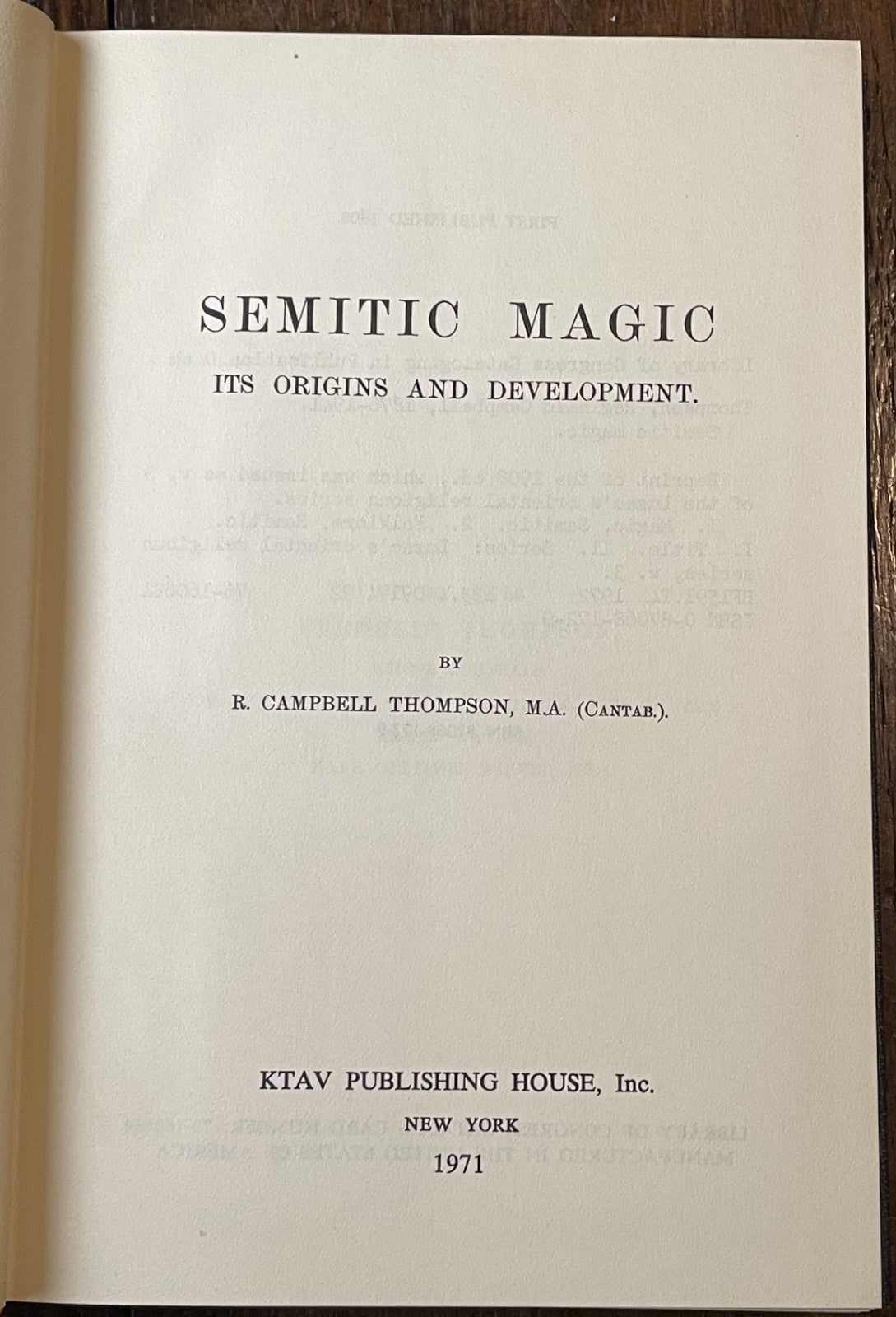 SEMITIC MAGIC - Thompson, 1971 - MAGICK, SORCERY, WITCHES, DEMONS, GRIMOIRE
