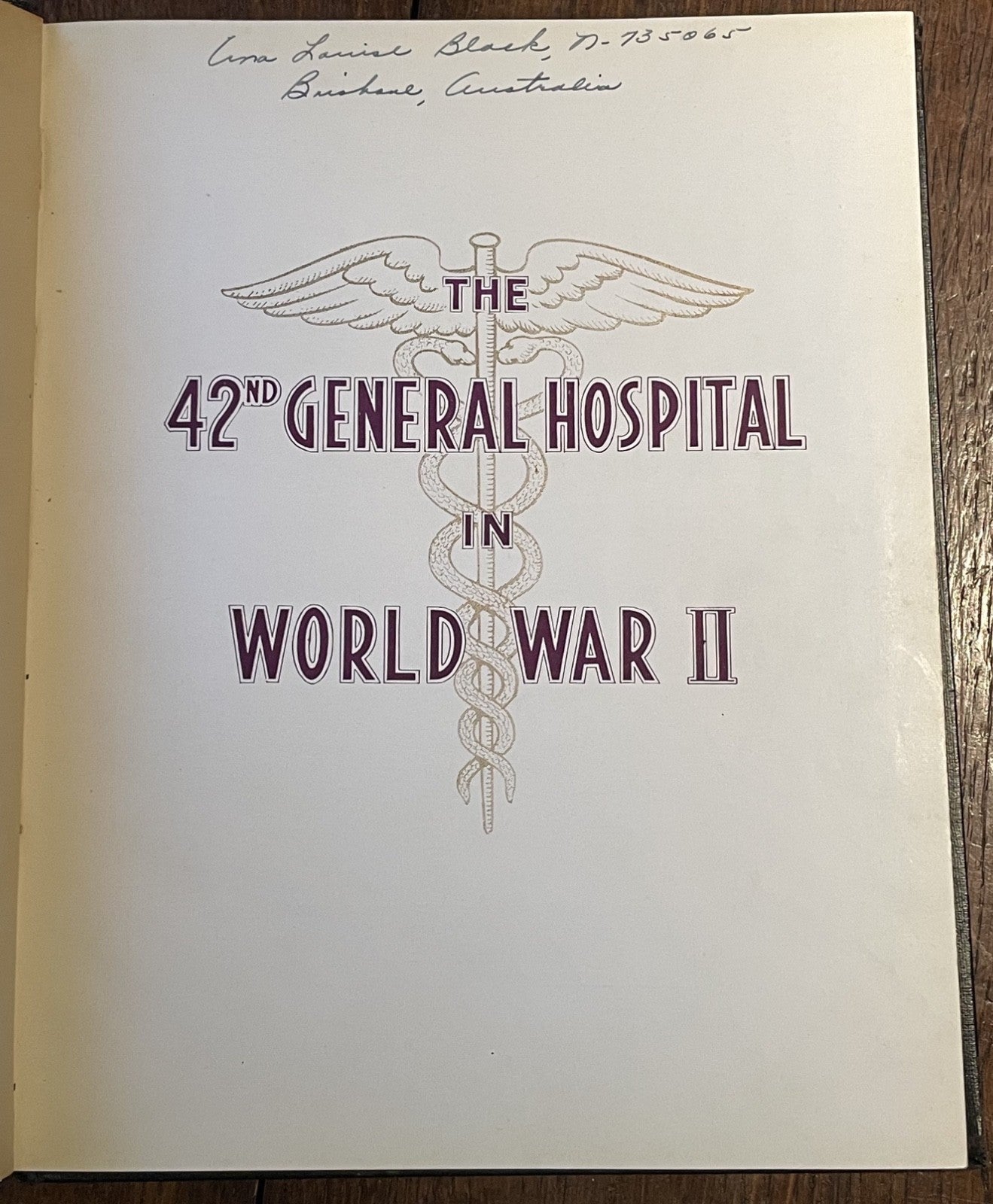 Book Details + Condition: "Truth" and "Sportsman" Ltd. (Valley, Brisbane, Australia). First Edition, 1944. Hardcover. 220 pages. Profusely illustrated with photographs, drawings and cartoons. The book documents the experiences of medical personnel who established and operated the 42nd General Hospital, which was originally set up in Australia. It chronicles the unit's mobilization from the University of Maryland and its subsequent operations in Melbourne, Canberra, and Queensland, including its main facility at Stuartholme near Brisbane and a psychiatric unit in Goodna, Queensland.