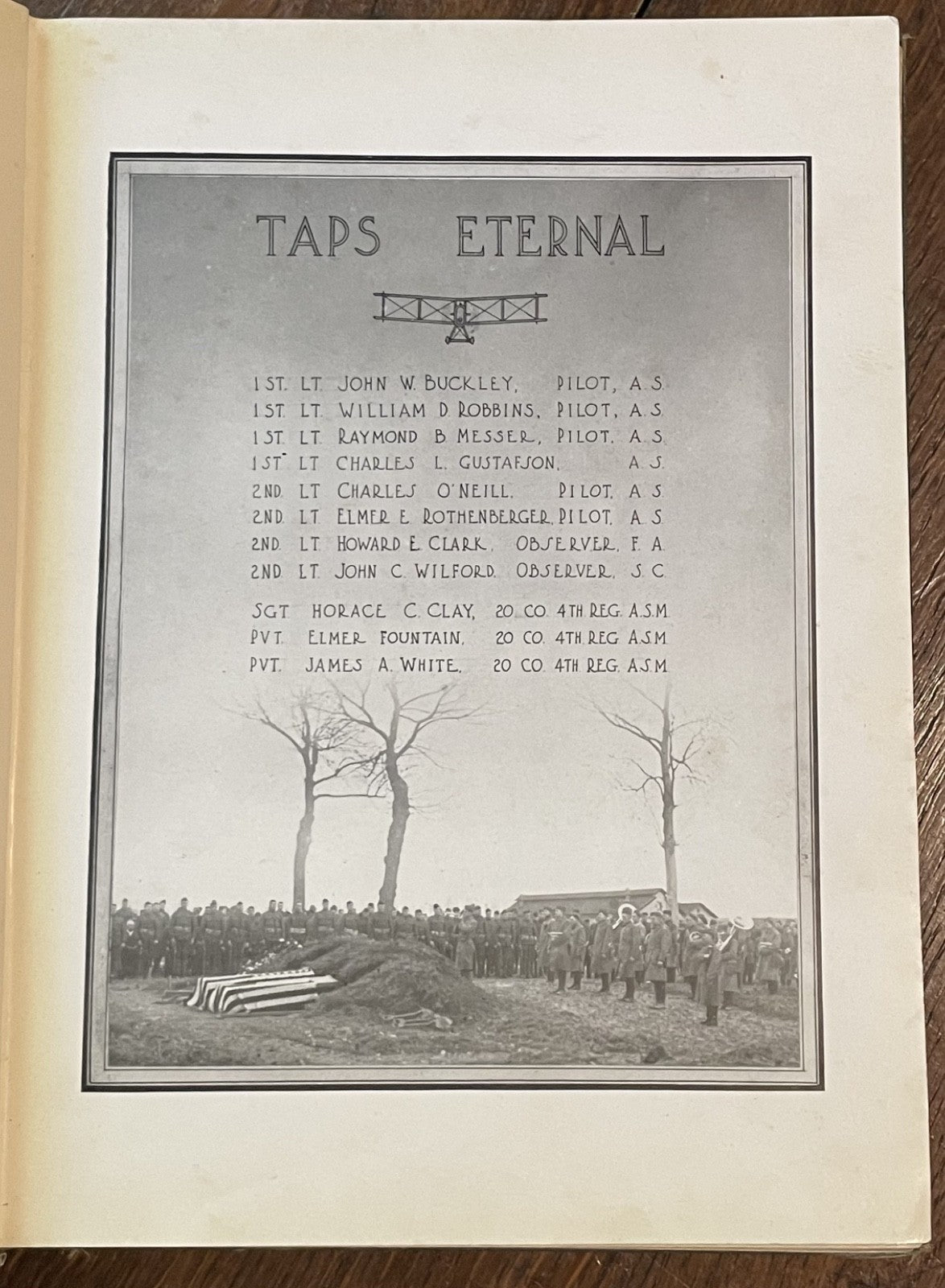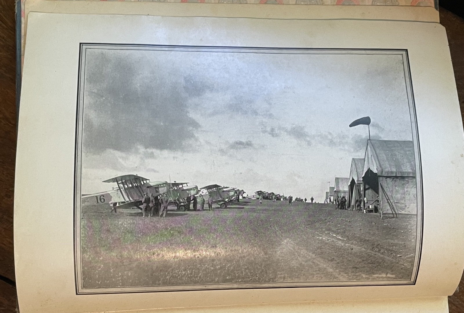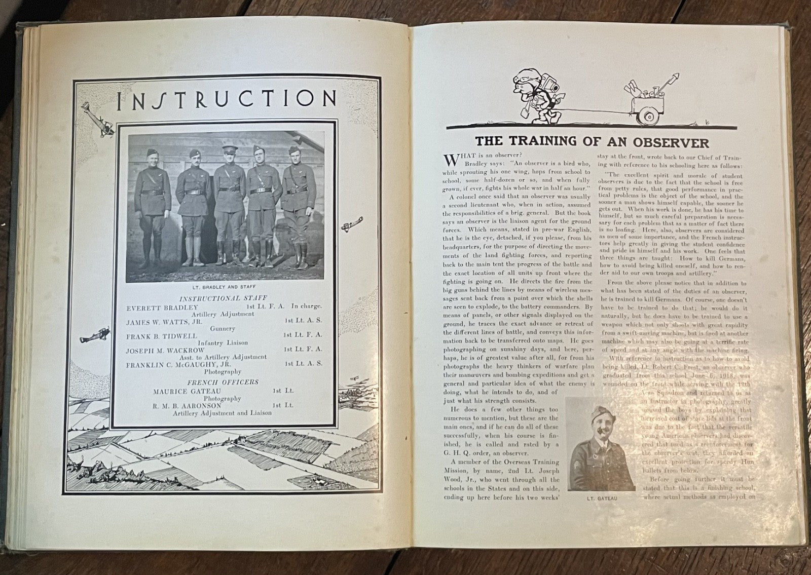 Book Details + Condition: The Dean-Hicks Company (Grand Rapids, MI). First Edition, 1919. Hardcover with decorated teal boards. 135 pages. Illustrated with numerous photographs, cartoon drawings, and charts. Rosters of graduates, officers and fatalities are also included. The Second Corps Aeronautical School was located to the southeast of Paris during World War I. It was formed in 1918, and provided training for aerial observers and for units of line troops in liaison between ground and air.