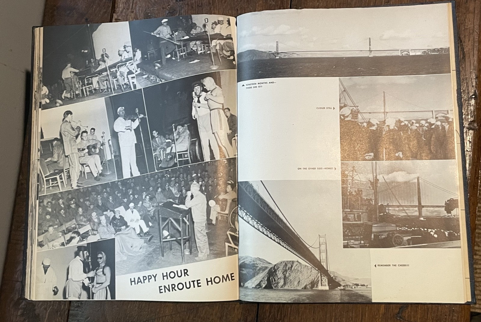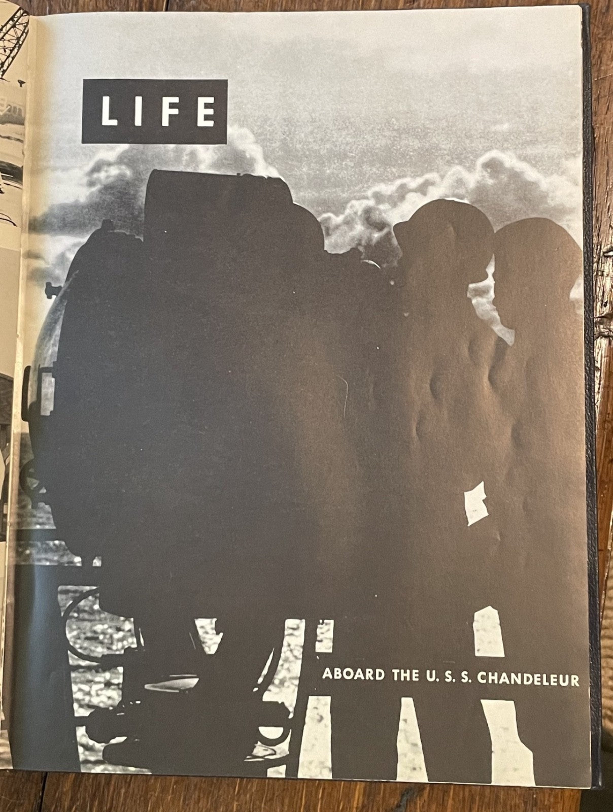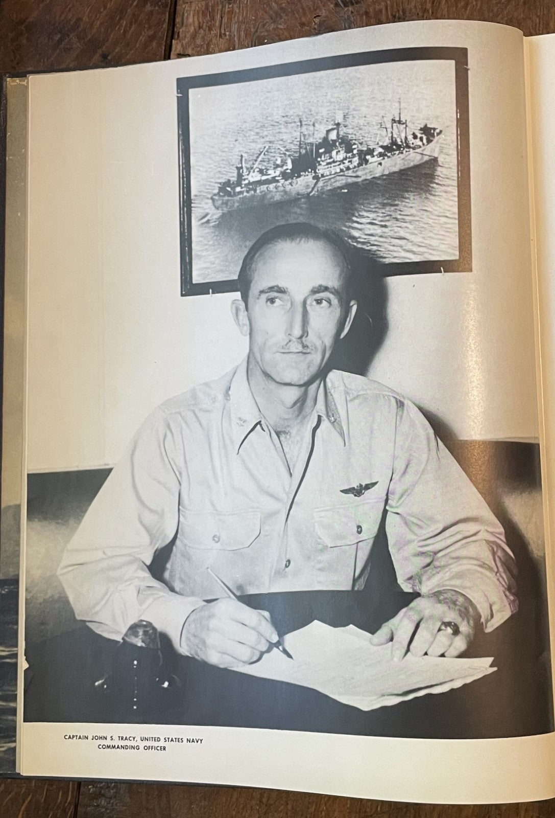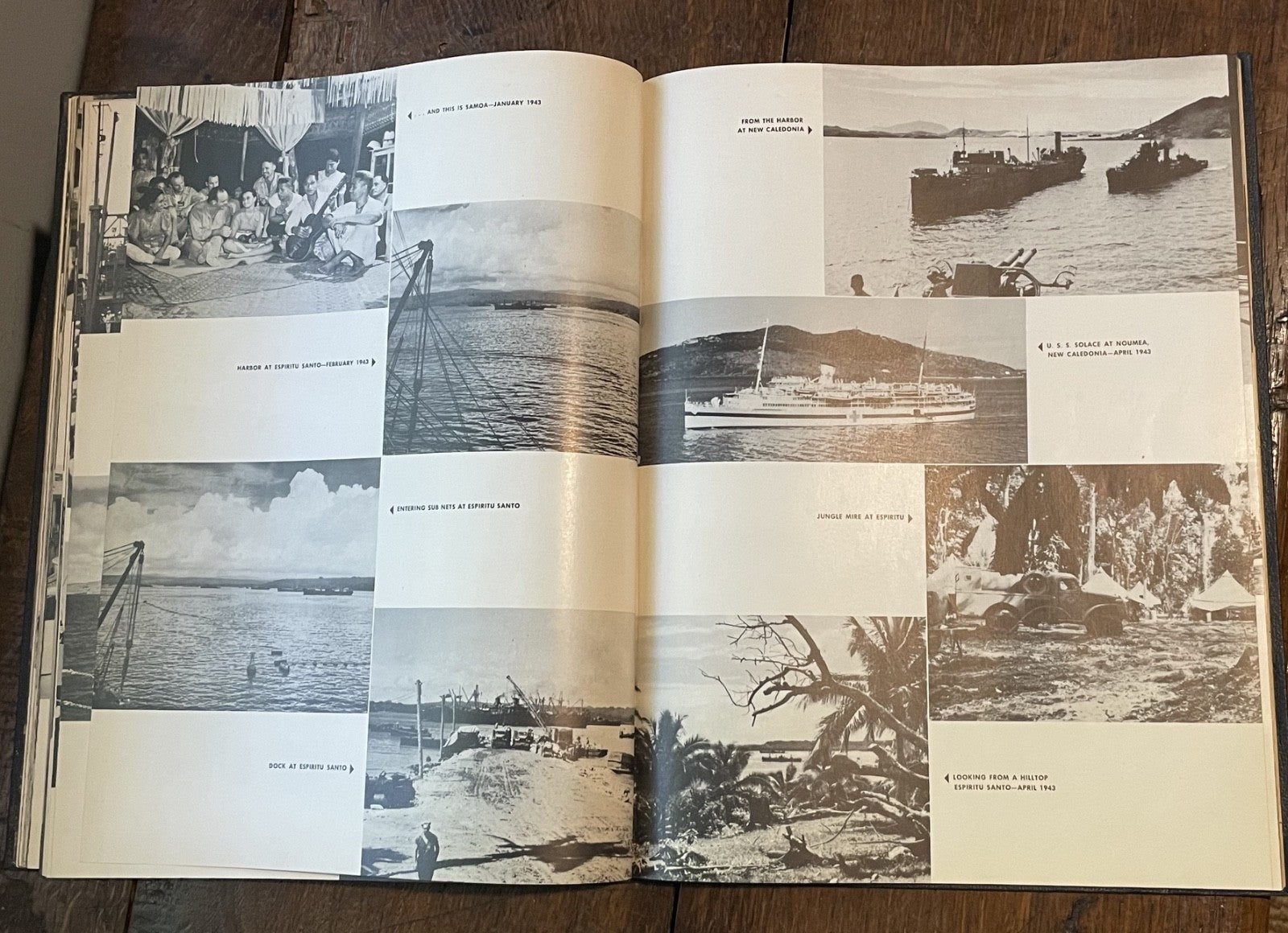 Book Details + Condition: Schwabacher-Frey Company (San Francisco, CA). First Edition, 1946. Hardcover measuring approximately 12" x 9.5". 138 pages. Illustrated with photographs. The book details the naval vessel's significant World War II service as a seaplane tender in the Pacific Theater, supporting reconnaissance and attack missions, troop and cargo transport, and the capture of key islands like the Palau and Ryukyus chains. The ship played a role in major actions, including spotting the Japanese battleship Yamato for sinking and operating from bases that included Okinawa. The Chandeleur earned five battle stars for its contributions before being decommissioned and scrapped in the early 1970s.