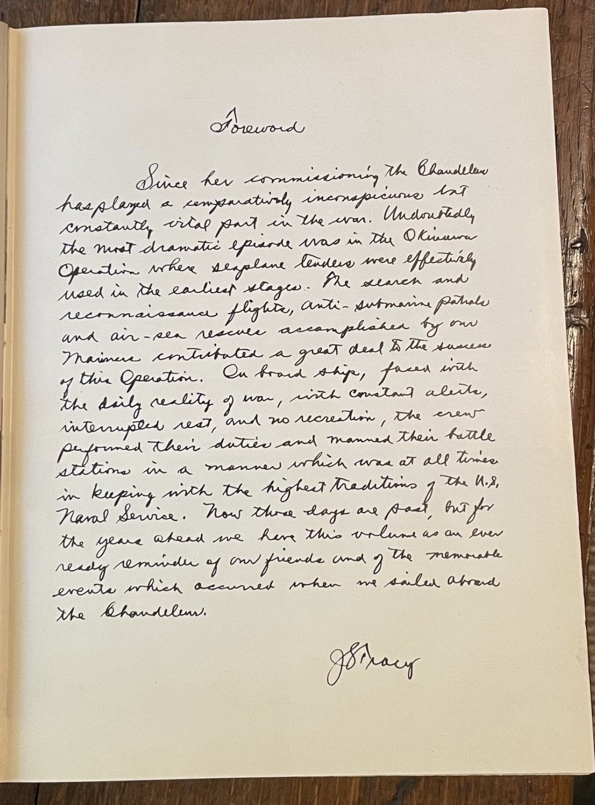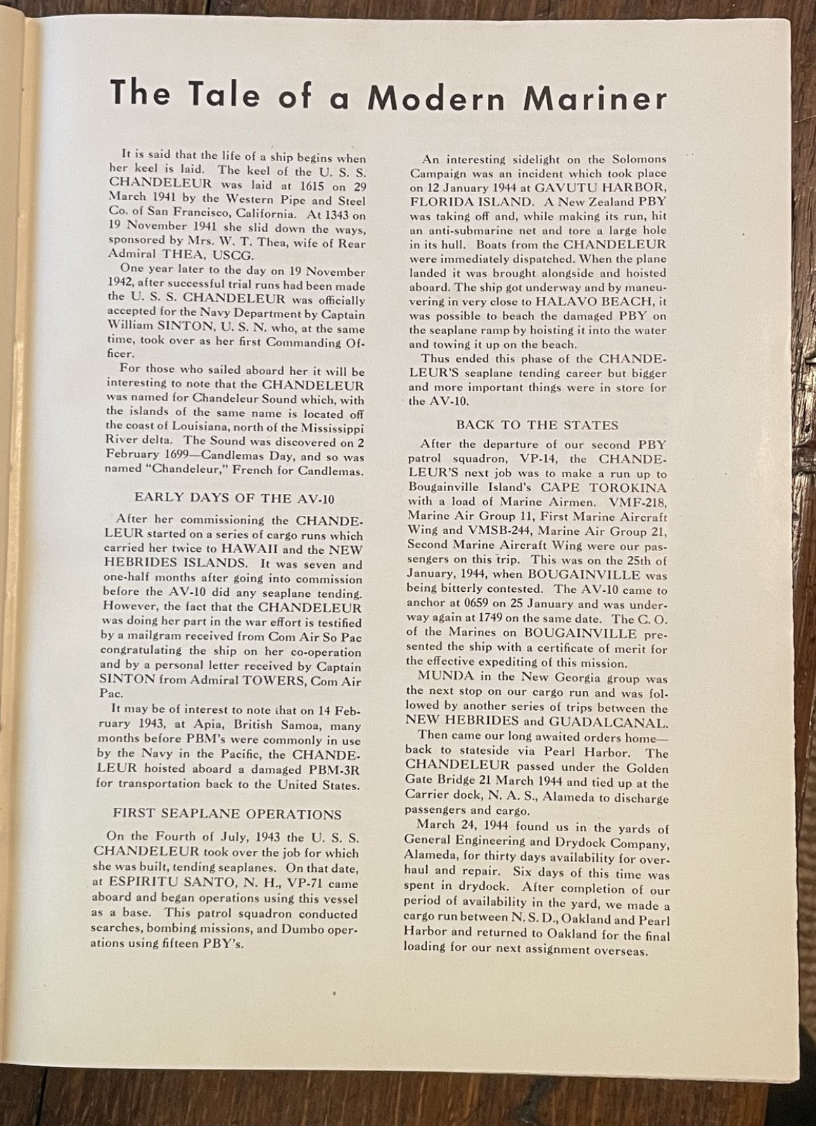 THE WAR DIARY OF THE U.S.S. CHANDELEUR (AV - 10): THE STORY OF A SEAPLANE TENDER IN WORLD WAR II, 19 NOVEMBER 1942 TO 19 NOVEMBER 1945